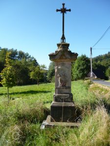 Kříž z roku 1843 se nachází u silnice procházející obcí. Drobnou památku, s pietními reliéfy sv. Antonína z Padovy (běžně též Antonín Paduánský) a svaté rodiny, na hlavici se 2 andílky a uprostřed s beránkem na rozeklané, nechal na dříku podstavce uvedeném roce zhotovit v té době zdejší mlynář Anton Schwarz a jeho manželka Mariana. Jedná se o významný doklad lidového klasicistního sochařství charakteristického pro region. K mlynáři se váže i mlýn, který v Dolánkách stával. Více o tomto již bohužel zaniklém mlýnu se můžete dozvědět zde vodnimlyny.cz.